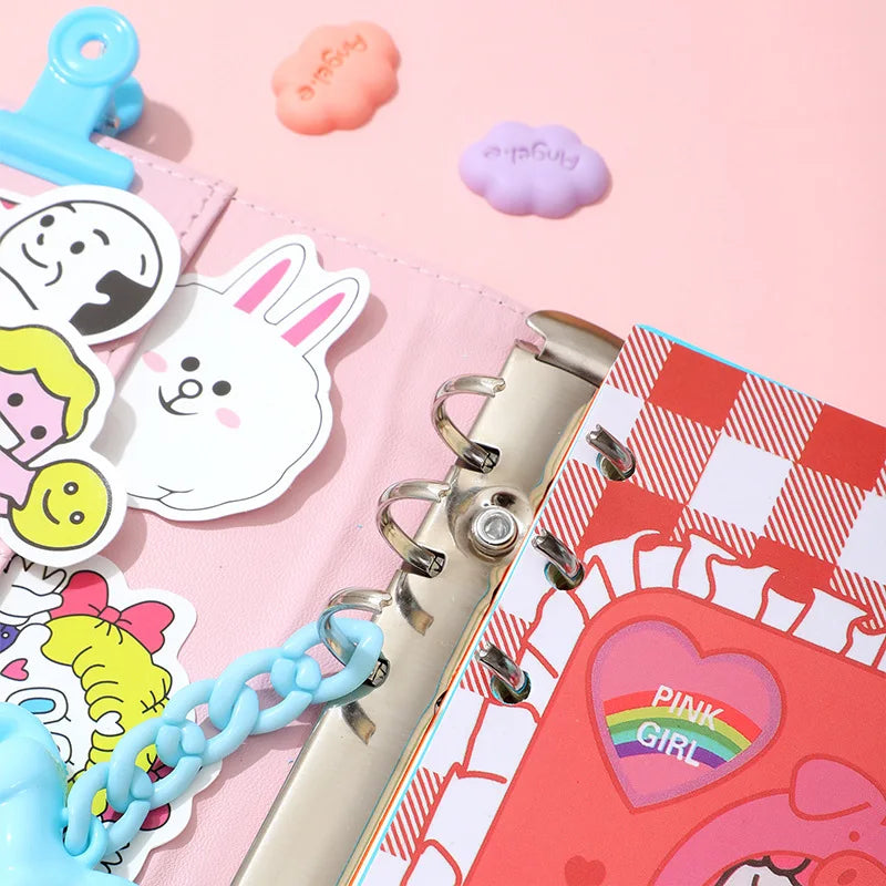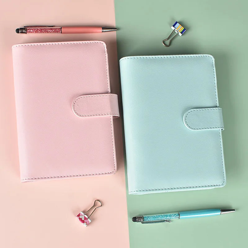 Macaron Color A5 A6 6 Ring Binder PU Clip-on Notebook Leather Loose Leaf Notebook Cover Notebooks Journal Kawaii Stationery
