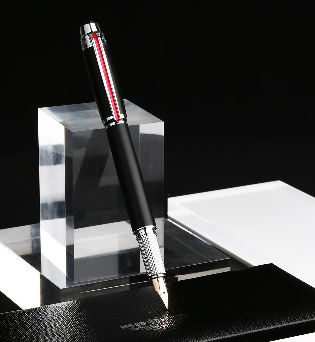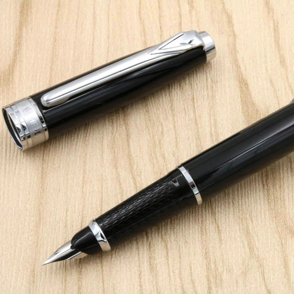 Metal 051 Fountain Pen Line Chessboard Black Silver 0.5mm Nib Ink Pens Stationery Office School Supplies Writing