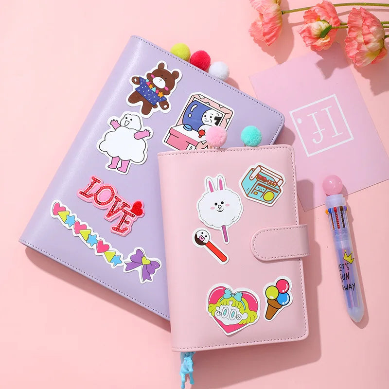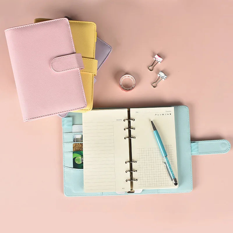 Macaron Color A5 A6 6 Ring Binder PU Clip-on Notebook Leather Loose Leaf Notebook Cover Notebooks Journal Kawaii Stationery