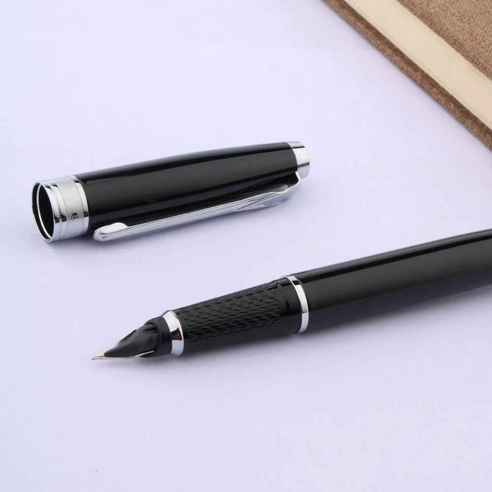 Metal 051 Fountain Pen Line Chessboard Black Silver 0.5mm Nib Ink Pens Stationery Office School Supplies Writing